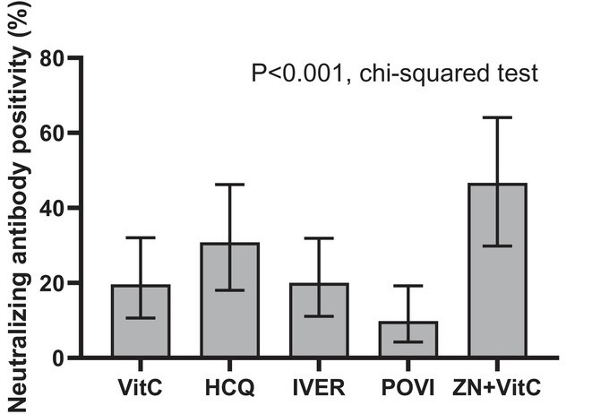 Combining Vitamin C with Zinc has been found to “significantly raise spike and neutralization antibodies (Anti-SARS-CoV-2 immunoglobulin G (IgG)) by 2x as compared to Ivermectin” which was one of the therapies tested.